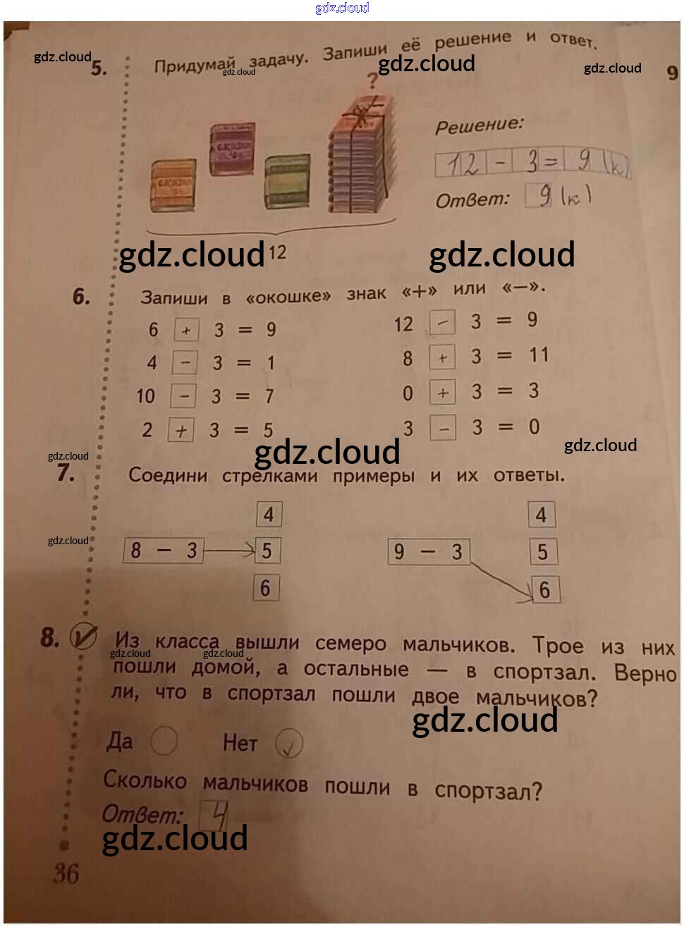 Ответ на задание 36 Рабочая тетрадь Математика за 1 (первый) класс Кочурова Начальная школа XXI века 2020