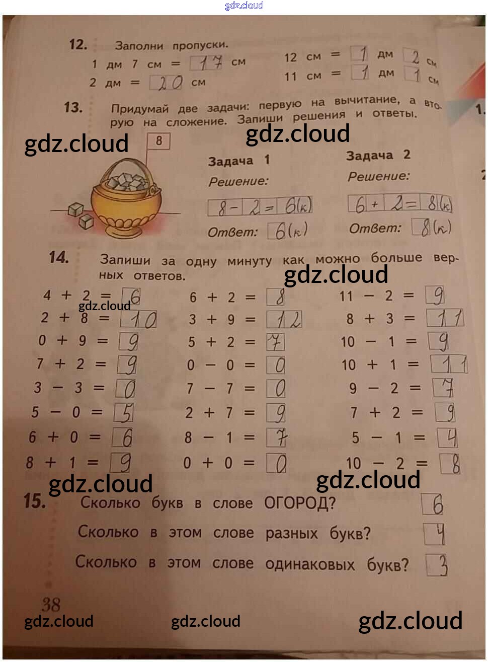 Ответ на задание 38 Рабочая тетрадь Математика за 1 (первый) класс Кочурова Начальная школа XXI века 2020