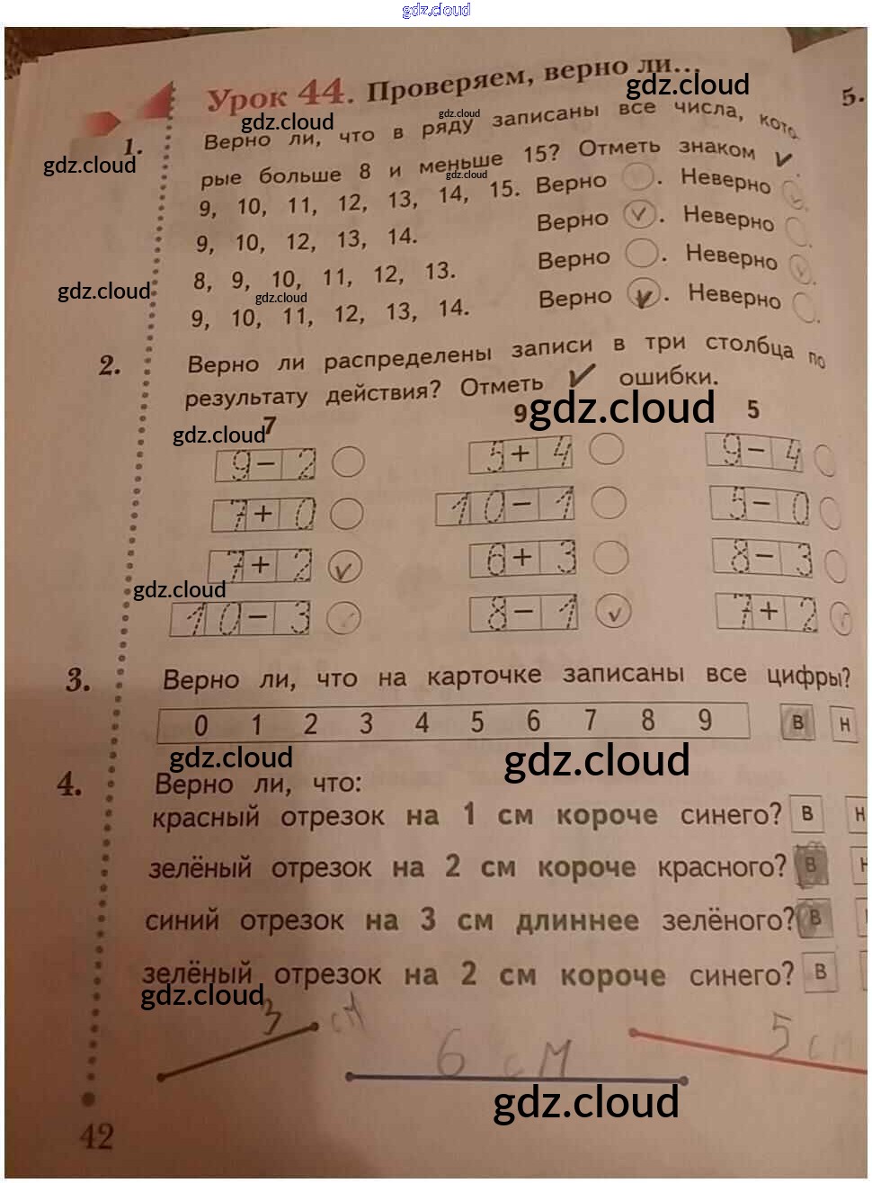 Ответ на задание 42 Рабочая тетрадь Математика за 1 (первый) класс Кочурова Начальная школа XXI века 2020