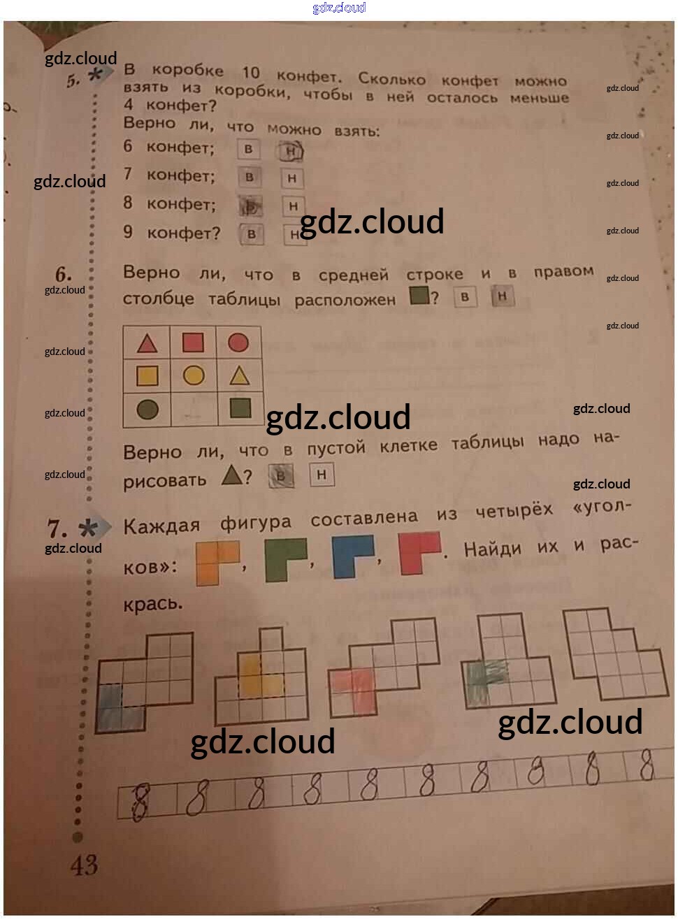 Ответ на задание 43 Рабочая тетрадь Математика за 1 (первый) класс Кочурова Начальная школа XXI века 2020