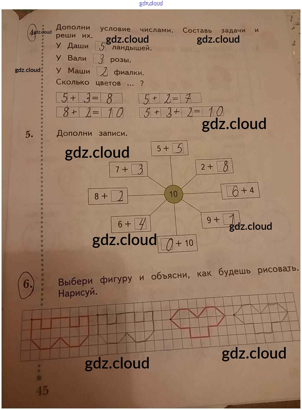 Ответ на задание 45 Рабочая тетрадь Математика за 1 (первый) класс Кочурова Начальная школа XXI века 2020