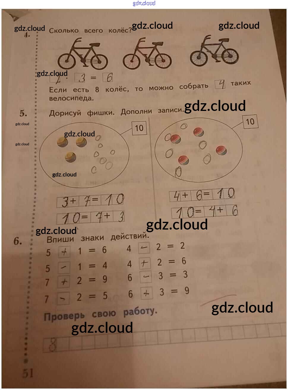 Ответ на задание 51 Рабочая тетрадь Математика за 1 (первый) класс Кочурова Начальная школа XXI века 2020