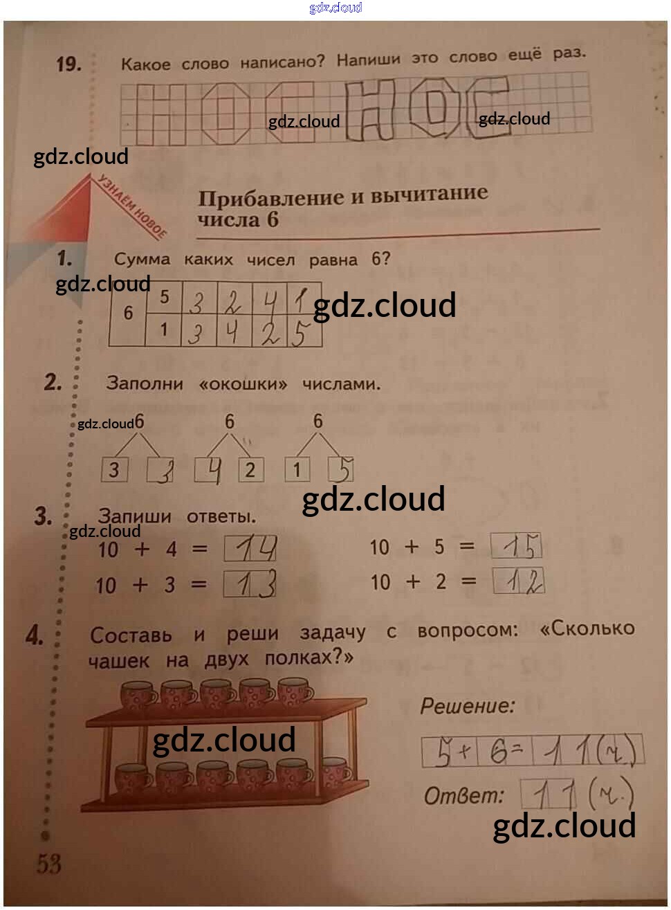 Ответ на задание 53 Рабочая тетрадь Математика за 1 (первый) класс Кочурова Начальная школа XXI века 2020