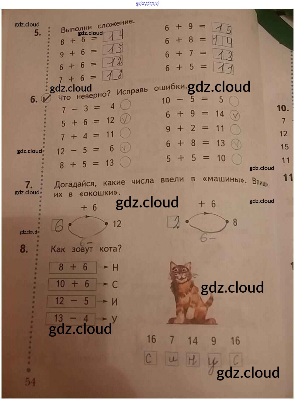Ответ на задание 54 Рабочая тетрадь Математика за 1 (первый) класс Кочурова Начальная школа XXI века 2020
