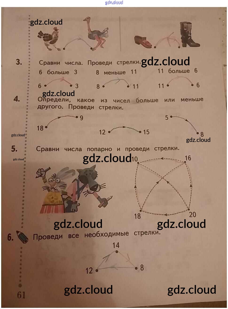 Ответ на задание 61 Рабочая тетрадь Математика за 1 (первый) класс Кочурова Начальная школа XXI века 2020