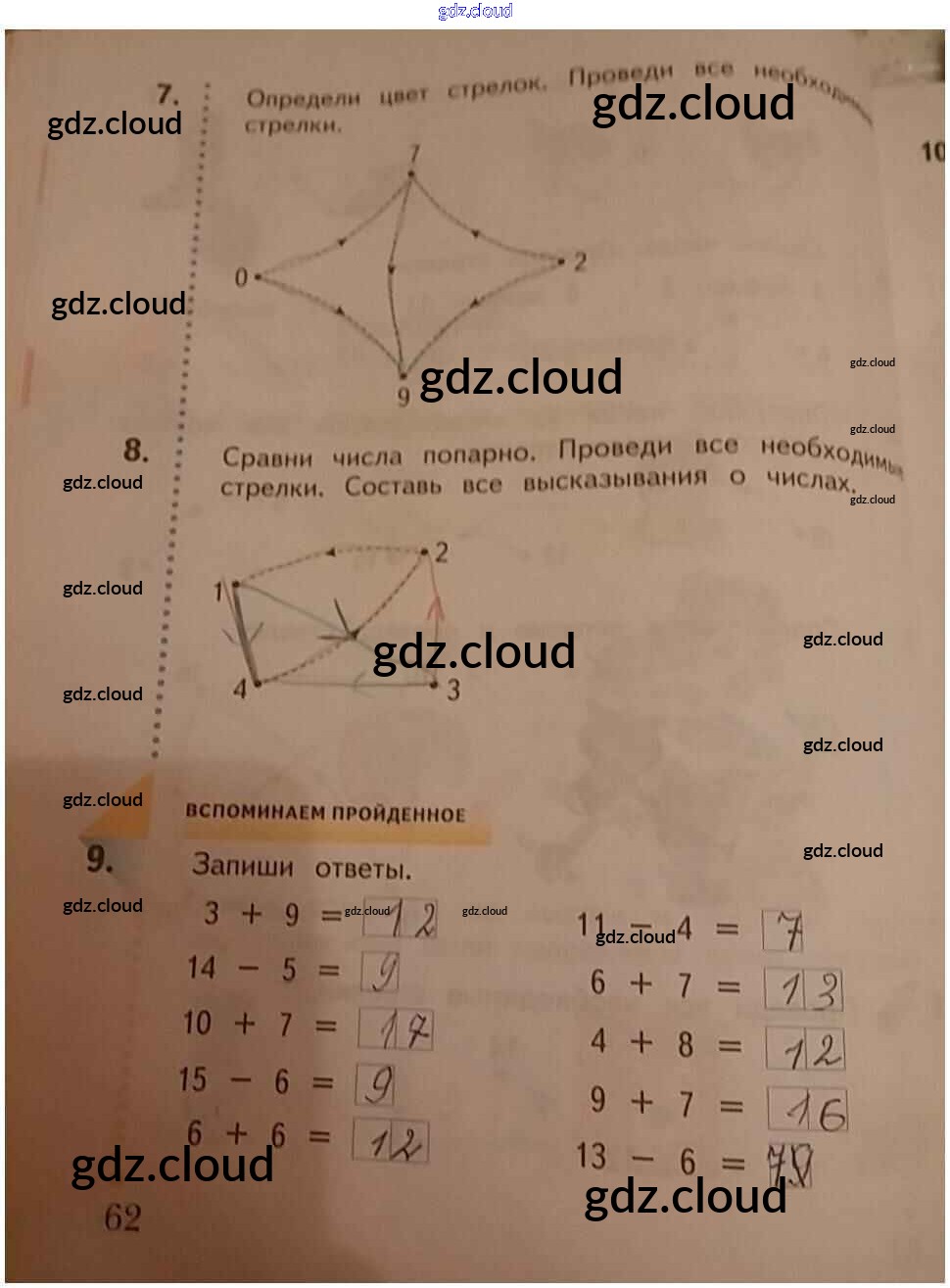 Ответ на задание 62 Рабочая тетрадь Математика за 1 (первый) класс Кочурова Начальная школа XXI века 2020