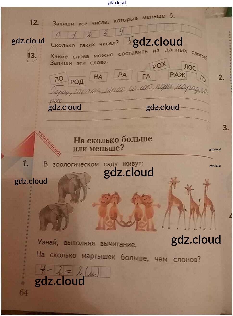 Ответ на задание 64 Рабочая тетрадь Математика за 1 (первый) класс Кочурова Начальная школа XXI века 2020