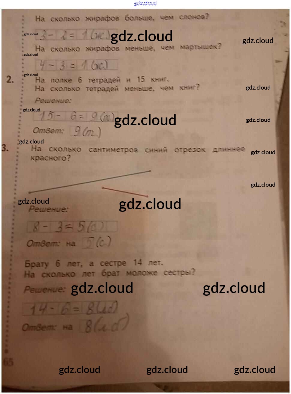 Ответ на задание 65 Рабочая тетрадь Математика за 1 (первый) класс Кочурова Начальная школа XXI века 2020