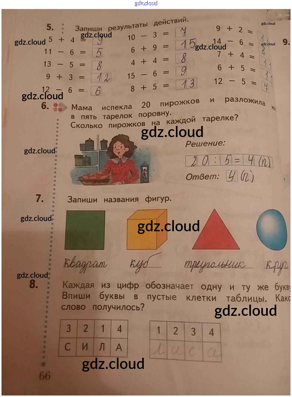 Ответ на задание 66 Рабочая тетрадь Математика за 1 (первый) класс Кочурова Начальная школа XXI века 2020