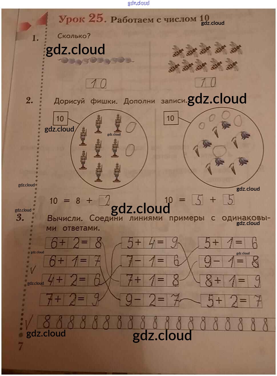 Ответ на задание 7 Рабочая тетрадь Математика за 1 (первый) класс Кочурова Начальная школа XXI века 2020
