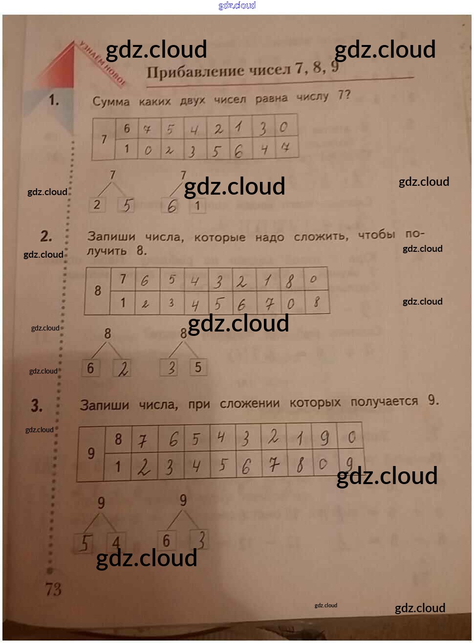Ответ на задание 73 Рабочая тетрадь Математика за 1 (первый) класс Кочурова Начальная школа XXI века 2020