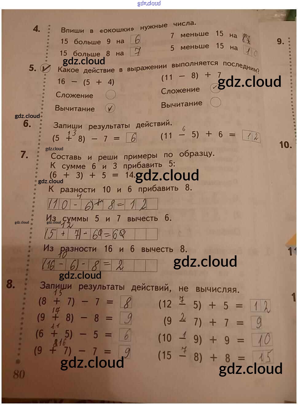 Ответ на задание 80 Рабочая тетрадь Математика за 1 (первый) класс Кочурова Начальная школа XXI века 2020