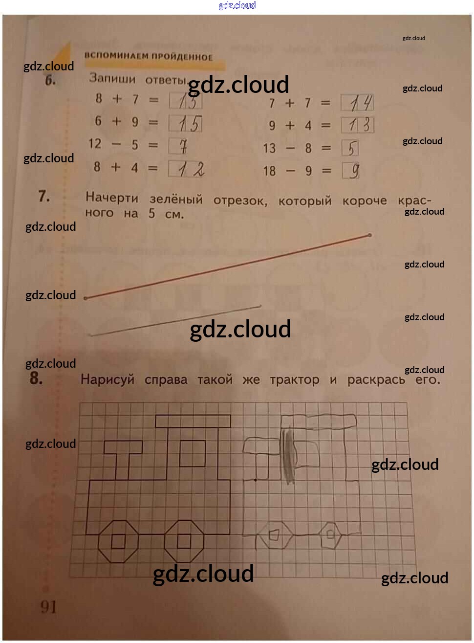 Ответ на задание 91 Рабочая тетрадь Математика за 1 (первый) класс Кочурова Начальная школа XXI века 2020