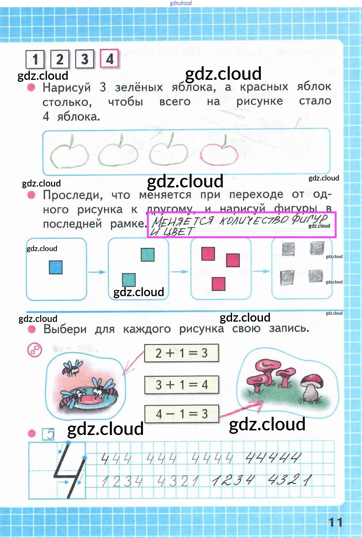 Ответ на задание 11 Рабочая тетрадь Математика за 1 (первый) класс Моро, Волкова Школа России 2016 Часть 1, 2