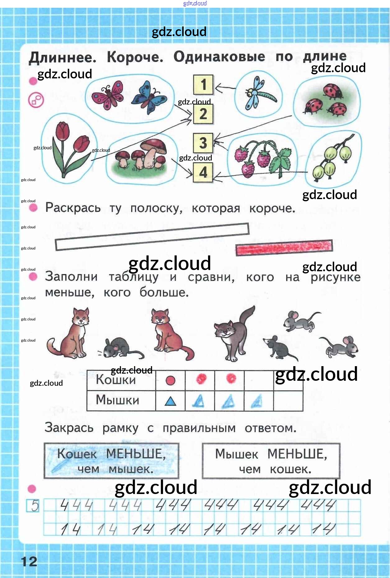 Ответ на задание 12 Рабочая тетрадь Математика за 1 (первый) класс Моро, Волкова Школа России 2016 Часть 1, 2