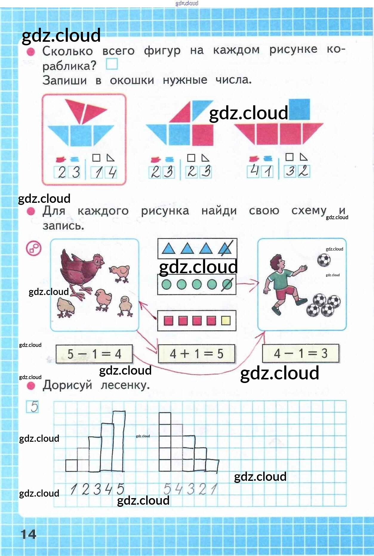 Ответ на задание 14 Рабочая тетрадь Математика за 1 (первый) класс Моро, Волкова Школа России 2016 Часть 1, 2