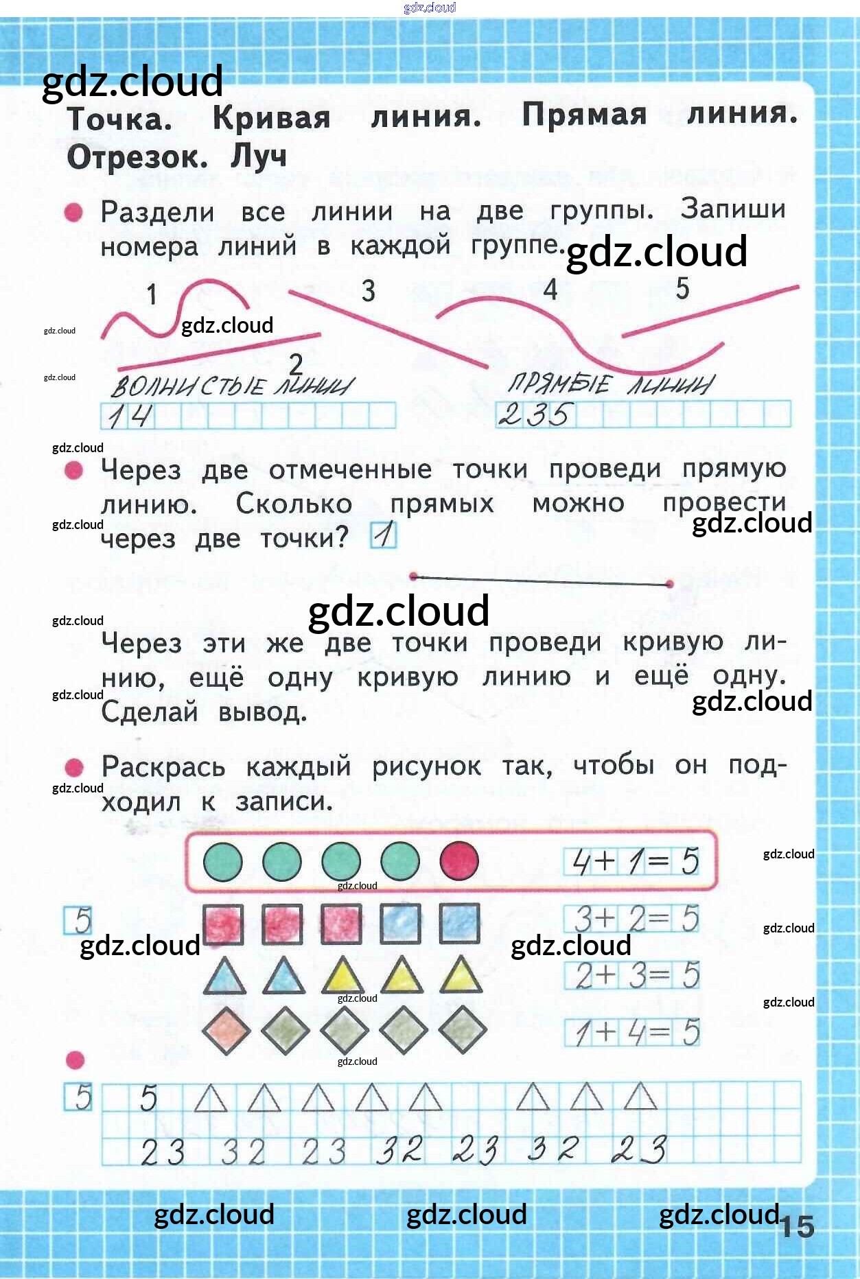 Ответ на задание 15 Рабочая тетрадь Математика за 1 (первый) класс Моро, Волкова Школа России 2016 Часть 1, 2