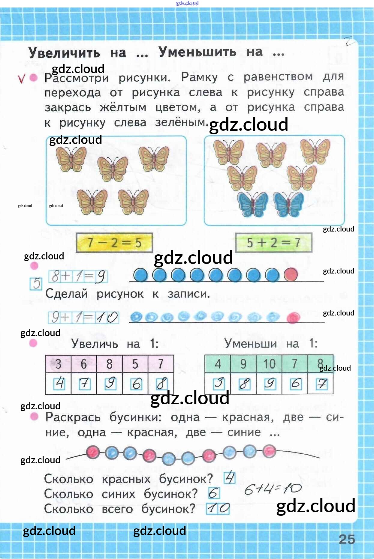 Ответ на задание 25 Рабочая тетрадь Математика за 1 (первый) класс Моро, Волкова Школа России 2016 Часть 1, 2