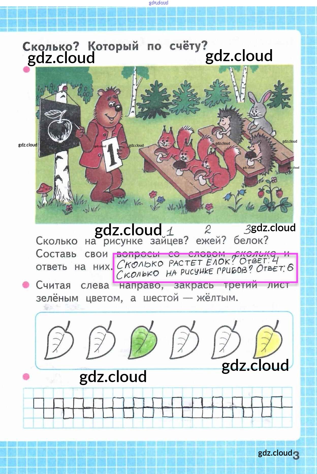 Ответ на задание 3 Рабочая тетрадь Математика за 1 (первый) класс Моро, Волкова Школа России 2016 Часть 1, 2