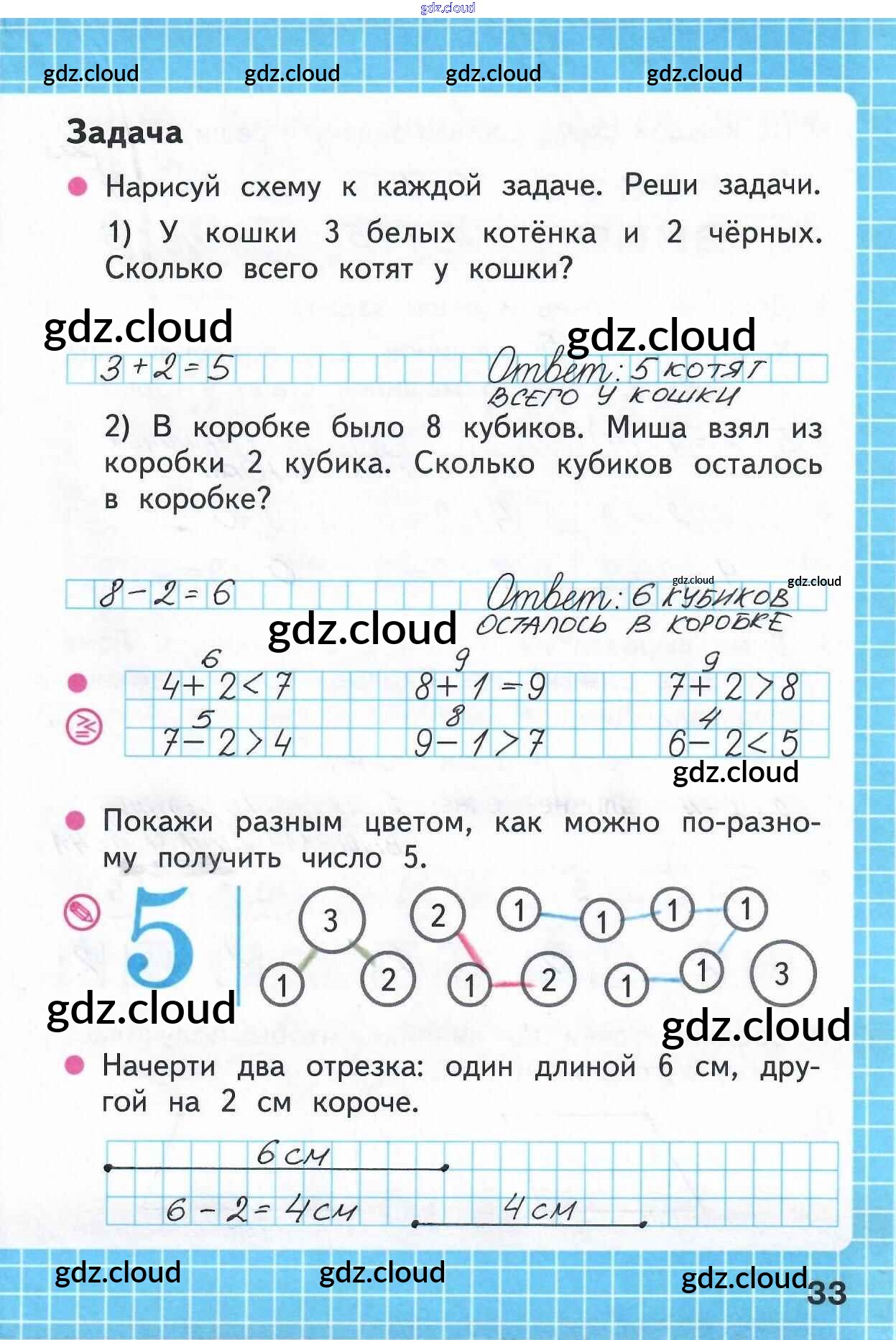 Ответ на задание 33 Рабочая тетрадь Математика за 1 (первый) класс Моро, Волкова Школа России 2016 Часть 1, 2