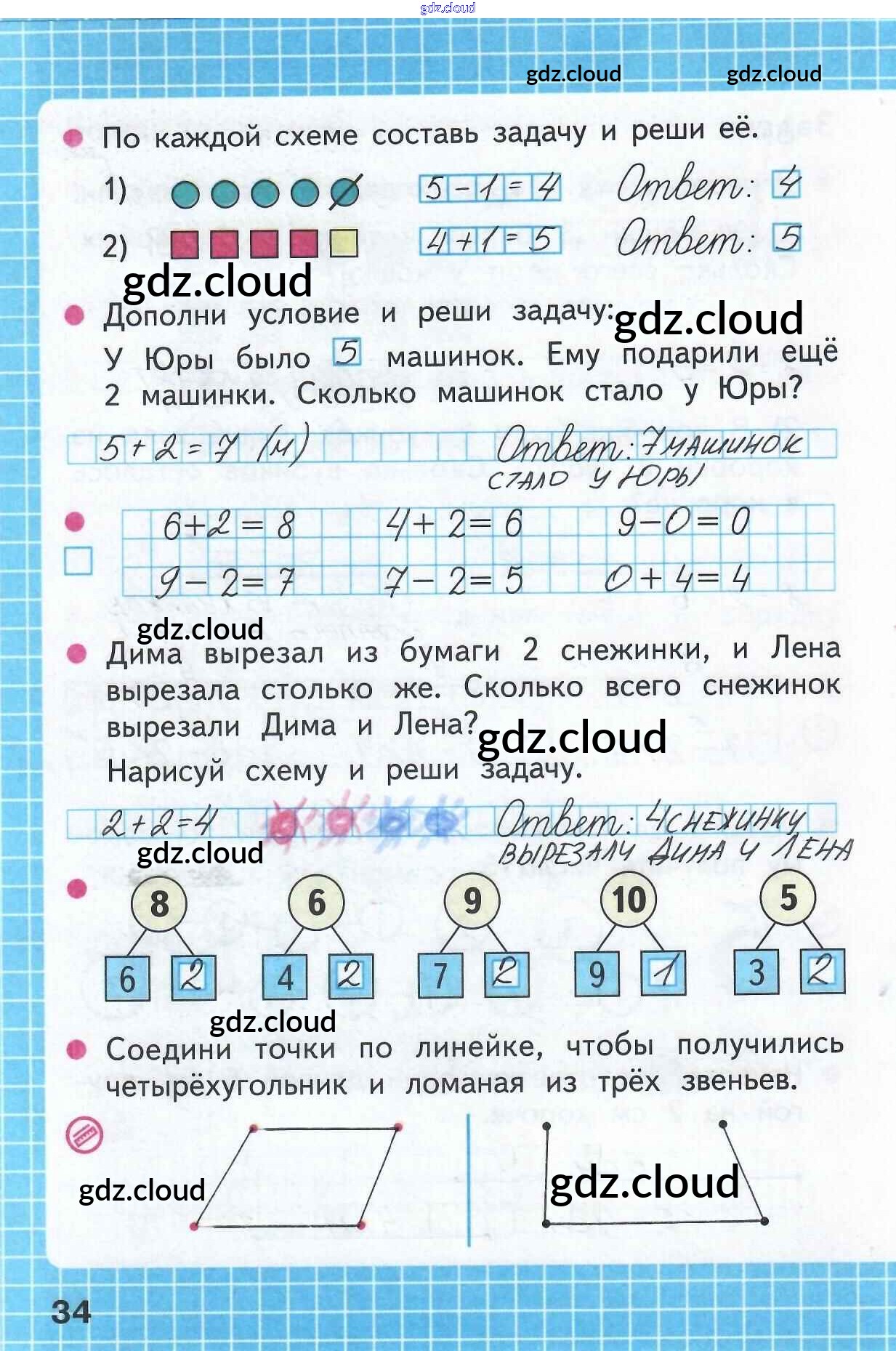 Ответ на задание 34 Рабочая тетрадь Математика за 1 (первый) класс Моро, Волкова Школа России 2016 Часть 1, 2