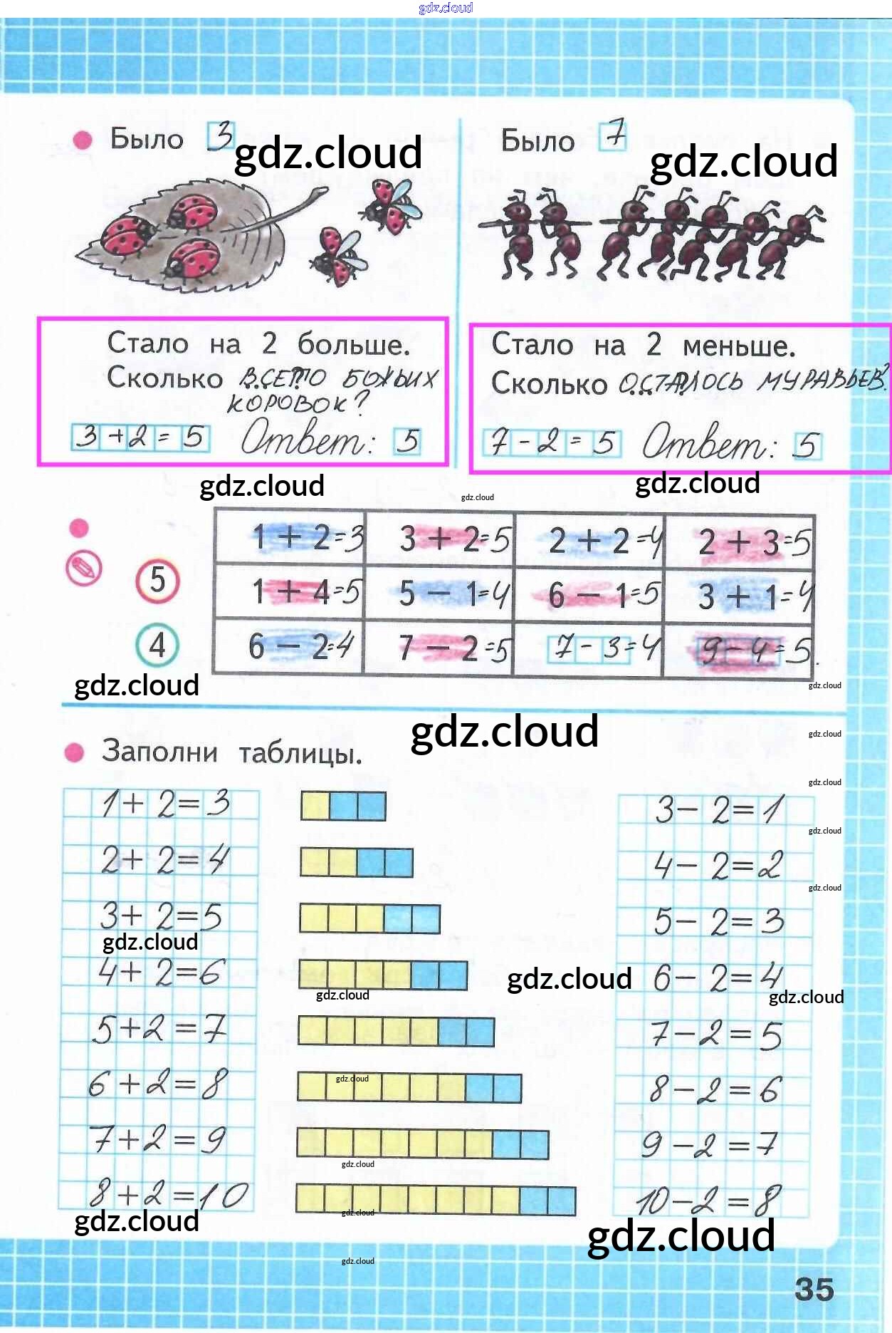Ответ на задание 35 Рабочая тетрадь Математика за 1 (первый) класс Моро, Волкова Школа России 2016 Часть 1, 2