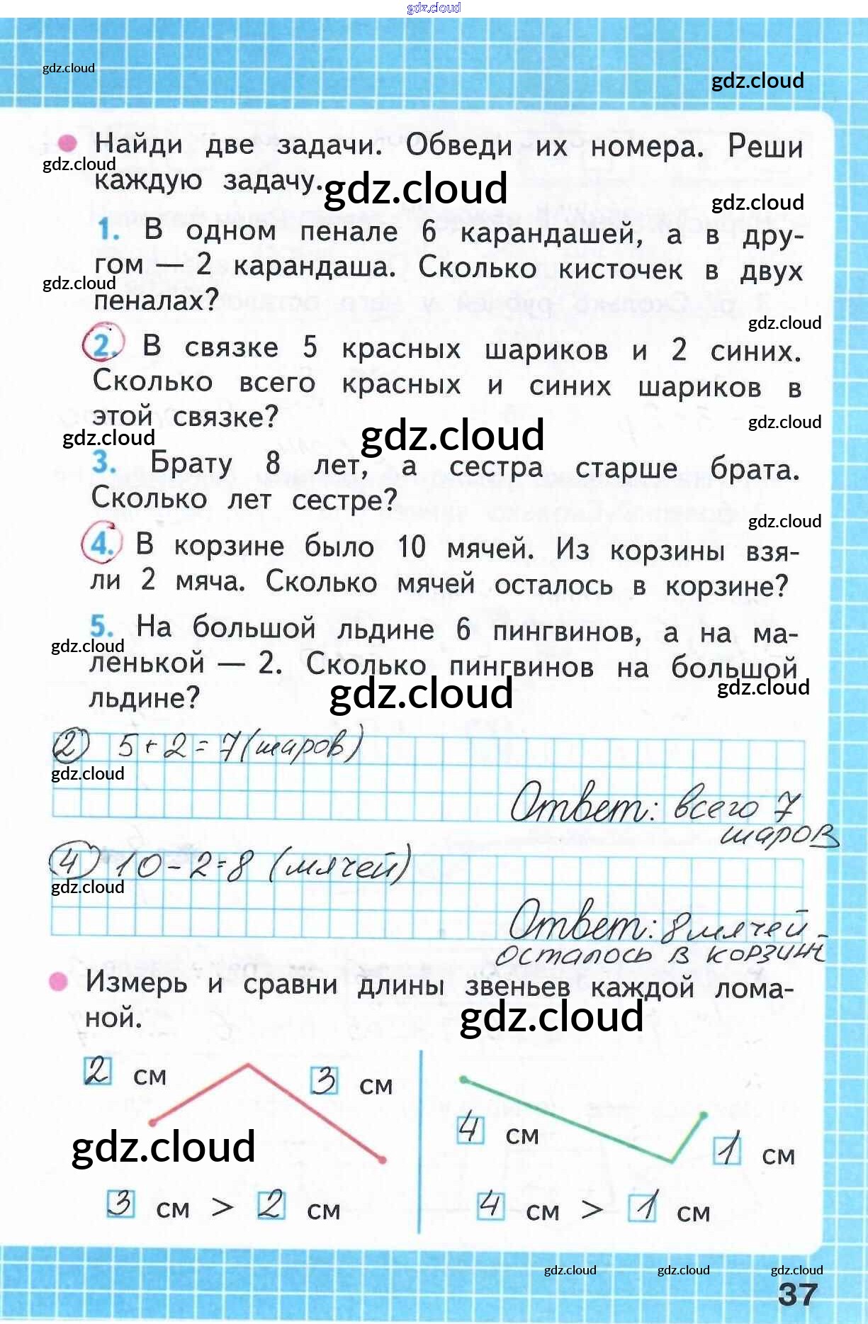 Ответ на задание 37 Рабочая тетрадь Математика за 1 (первый) класс Моро, Волкова Школа России 2016 Часть 1, 2