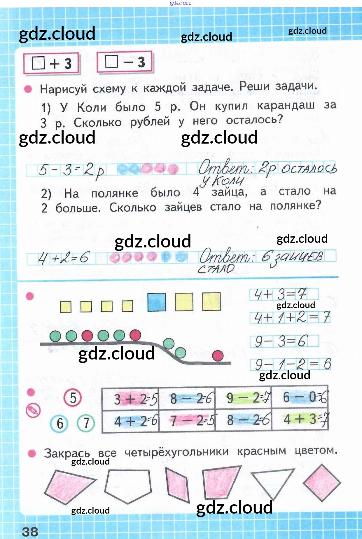 Ответ на задание 38 Рабочая тетрадь Математика за 1 (первый) класс Моро, Волкова Школа России 2016 Часть 1, 2