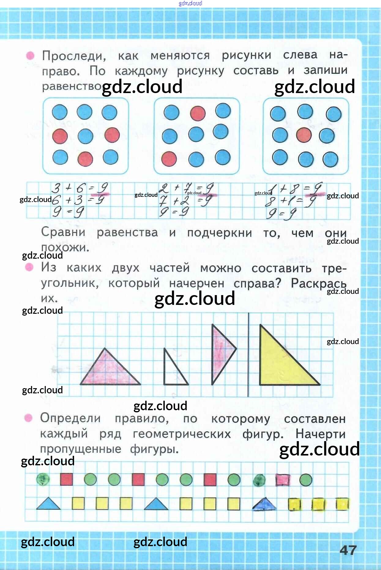 Ответ на задание 47 Рабочая тетрадь Математика за 1 (первый) класс Моро, Волкова Школа России 2016 Часть 1, 2