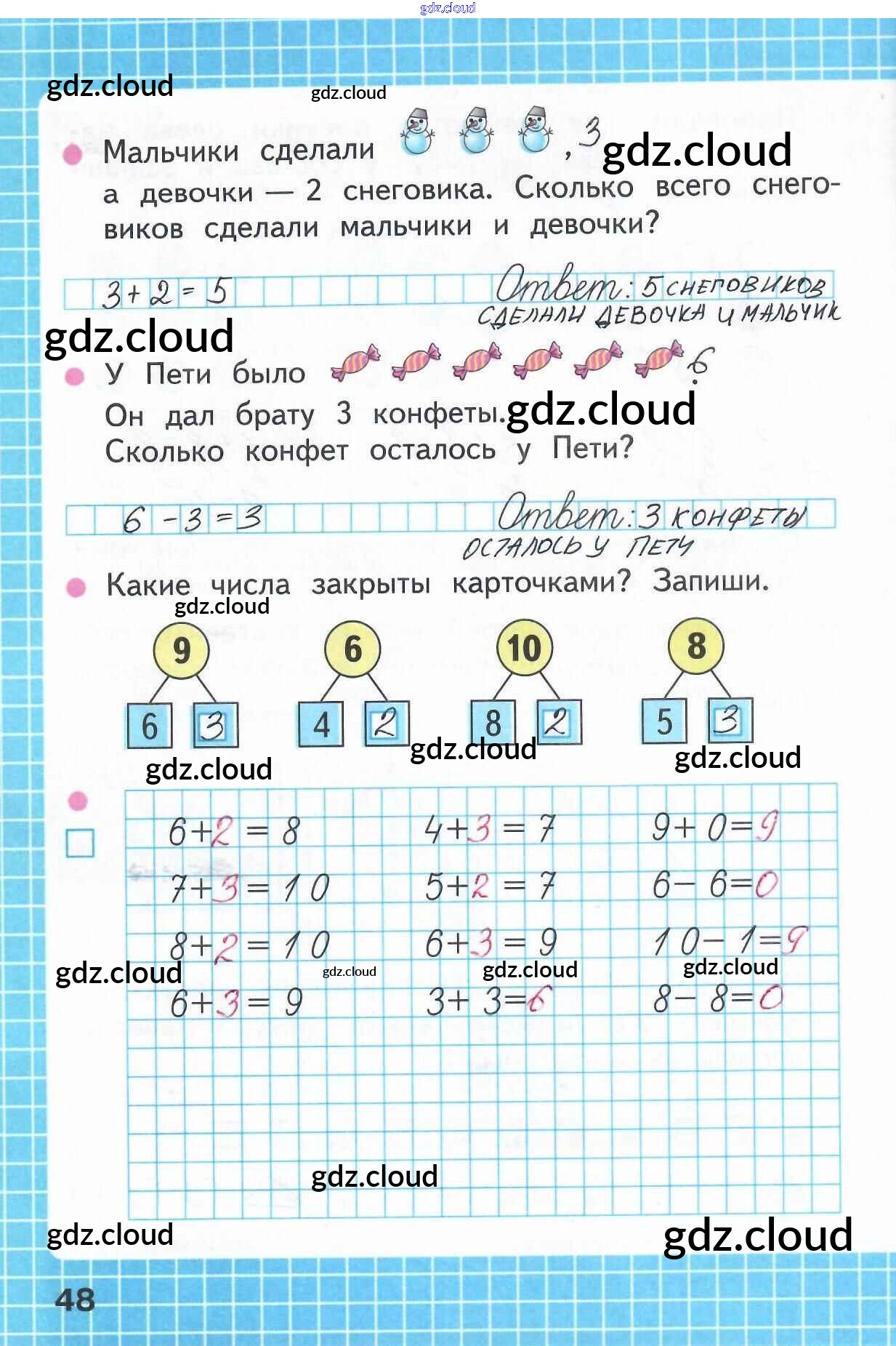 Ответ на задание 48 Рабочая тетрадь Математика за 1 (первый) класс Моро, Волкова Школа России 2016 Часть 1, 2