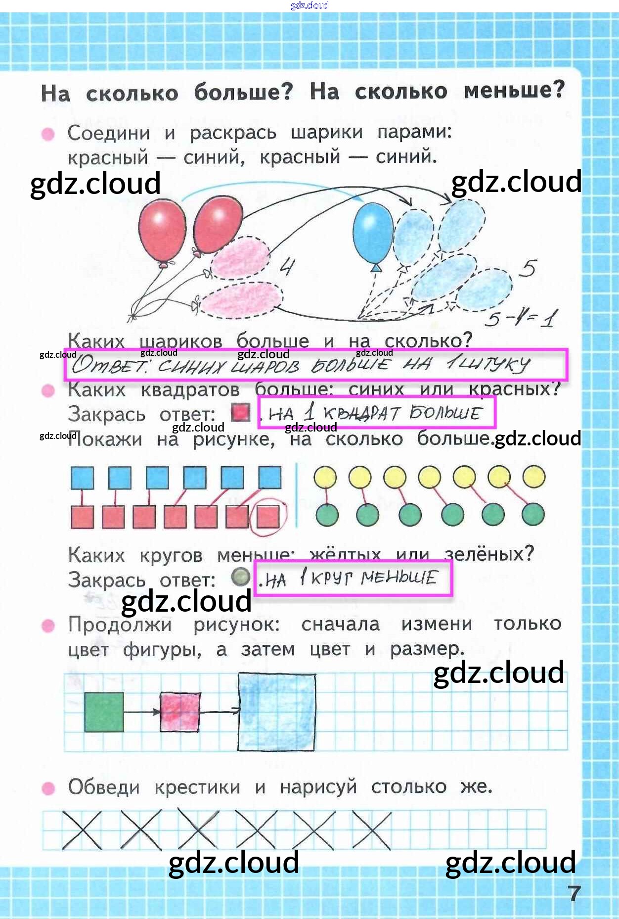 Ответ на задание 7 Рабочая тетрадь Математика за 1 (первый) класс Моро, Волкова Школа России 2016 Часть 1, 2