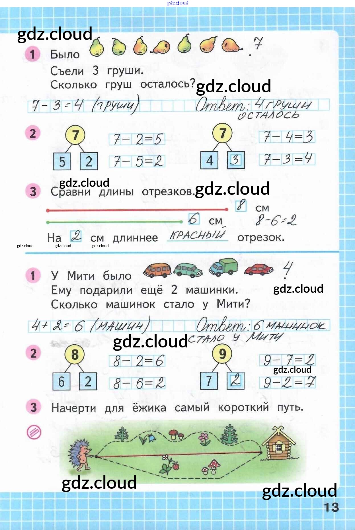 Ответ на задание 13 Рабочая тетрадь Математика за 1 (первый) класс Моро, Волкова Школа России 2016 Часть 1, 2