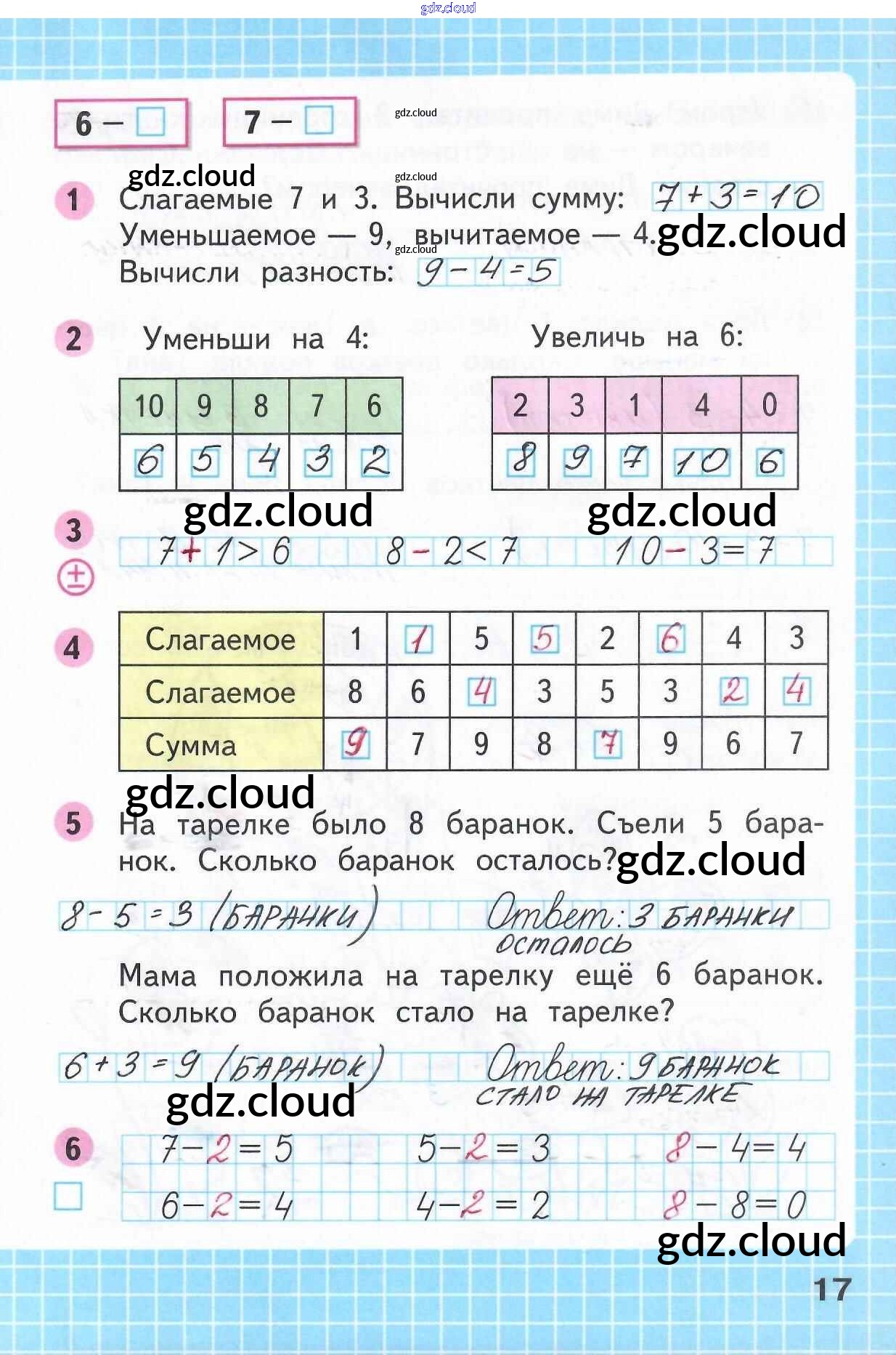Ответ на задание 17 Рабочая тетрадь Математика за 1 (первый) класс Моро, Волкова Школа России 2016 Часть 1, 2