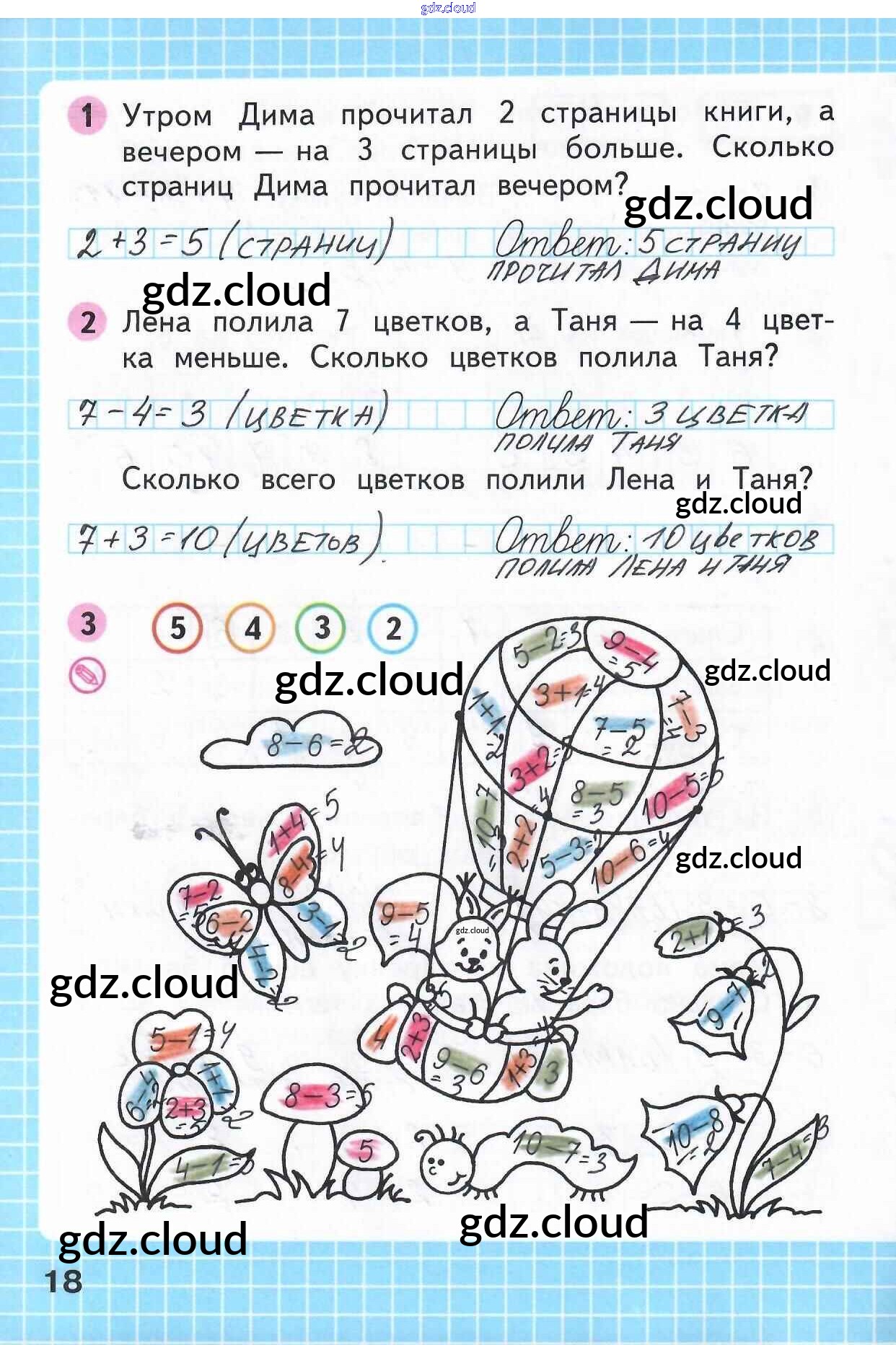 Ответ на задание 18 Рабочая тетрадь Математика за 1 (первый) класс Моро, Волкова Школа России 2016 Часть 1, 2