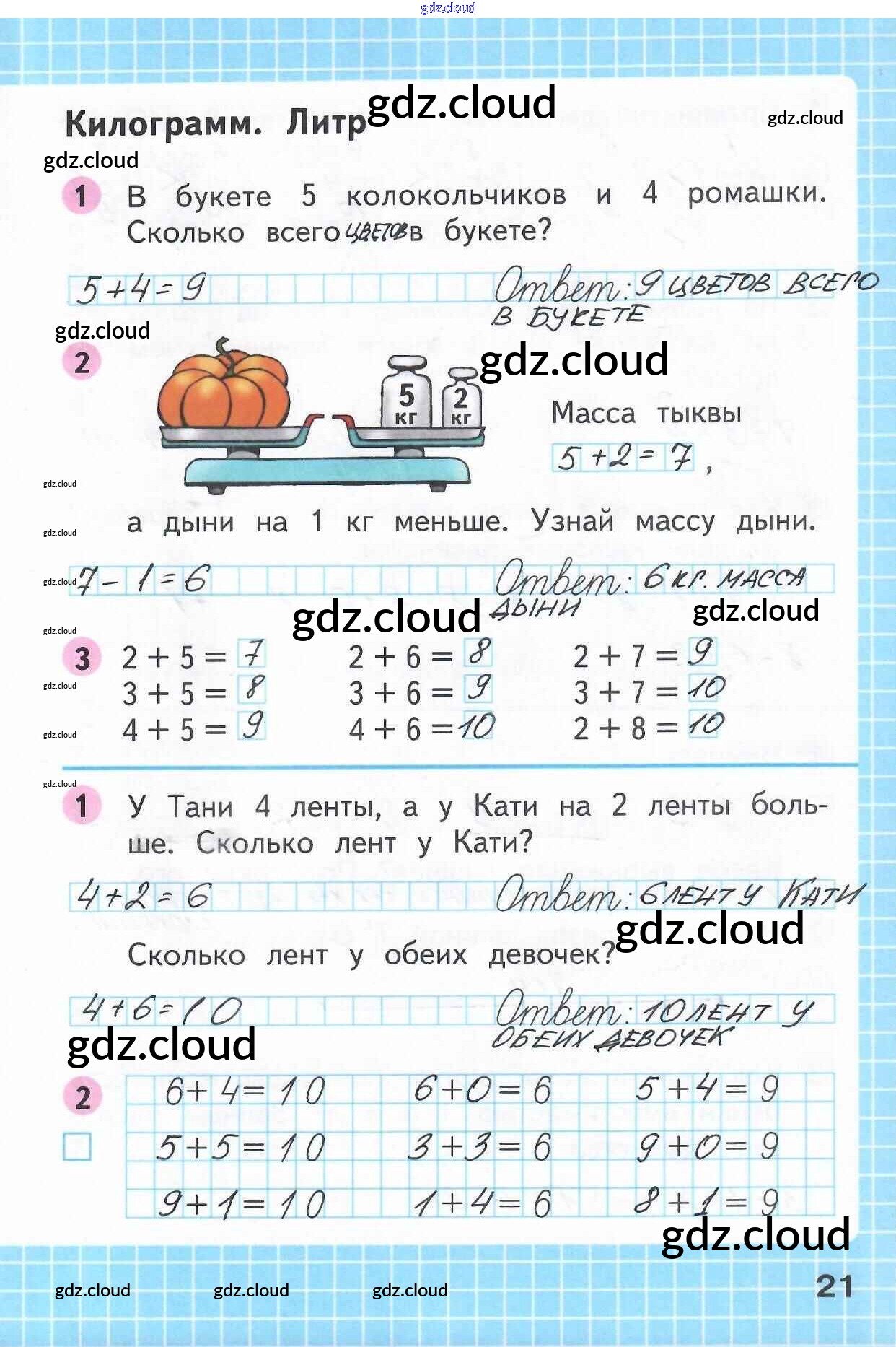Ответ на задание 21 Рабочая тетрадь Математика за 1 (первый) класс Моро, Волкова Школа России 2016 Часть 1, 2