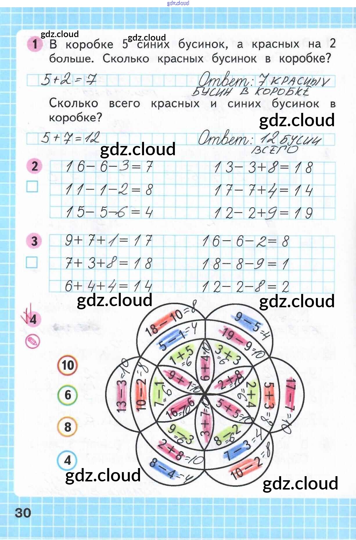 Ответ на задание 30 Рабочая тетрадь Математика за 1 (первый) класс Моро, Волкова Школа России 2016 Часть 1, 2