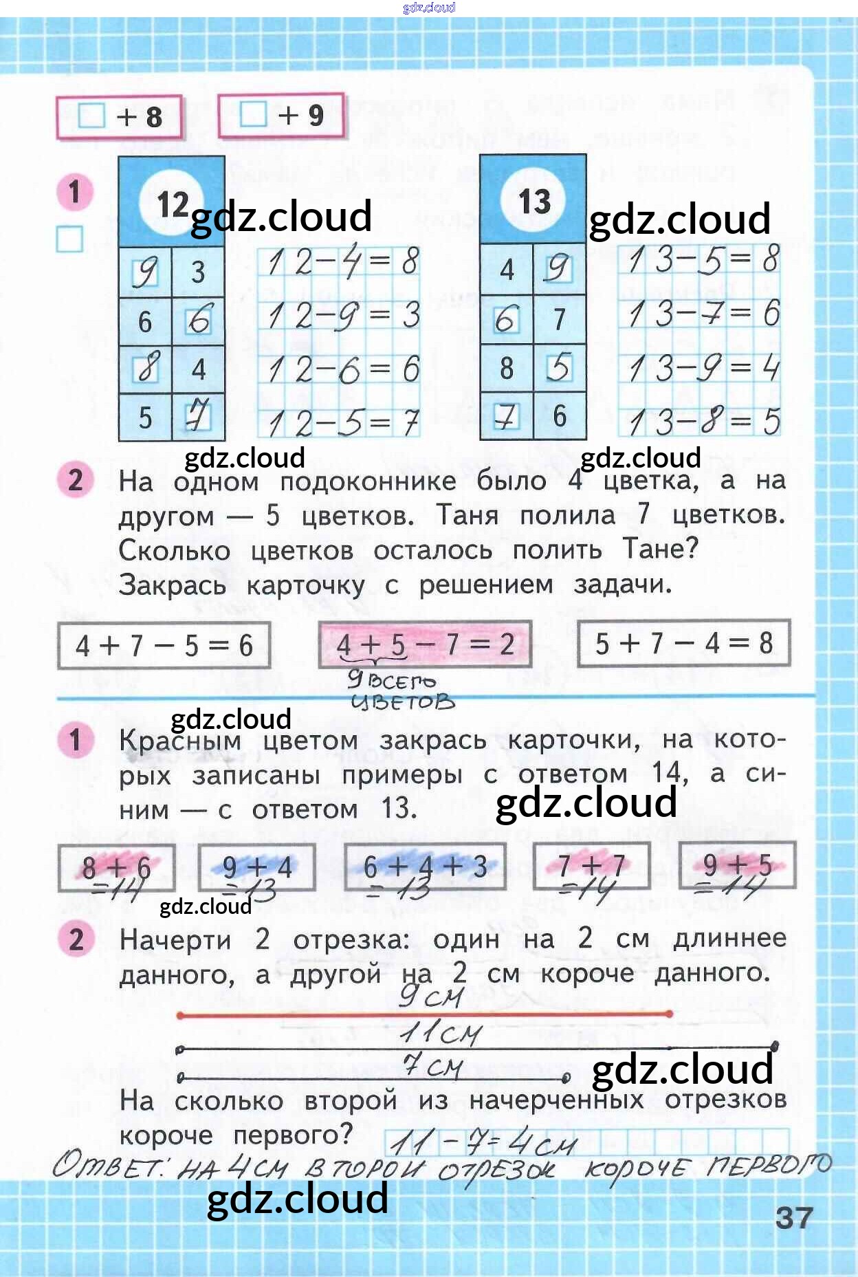 Ответ на задание 37 Рабочая тетрадь Математика за 1 (первый) класс Моро, Волкова Школа России 2016 Часть 1, 2