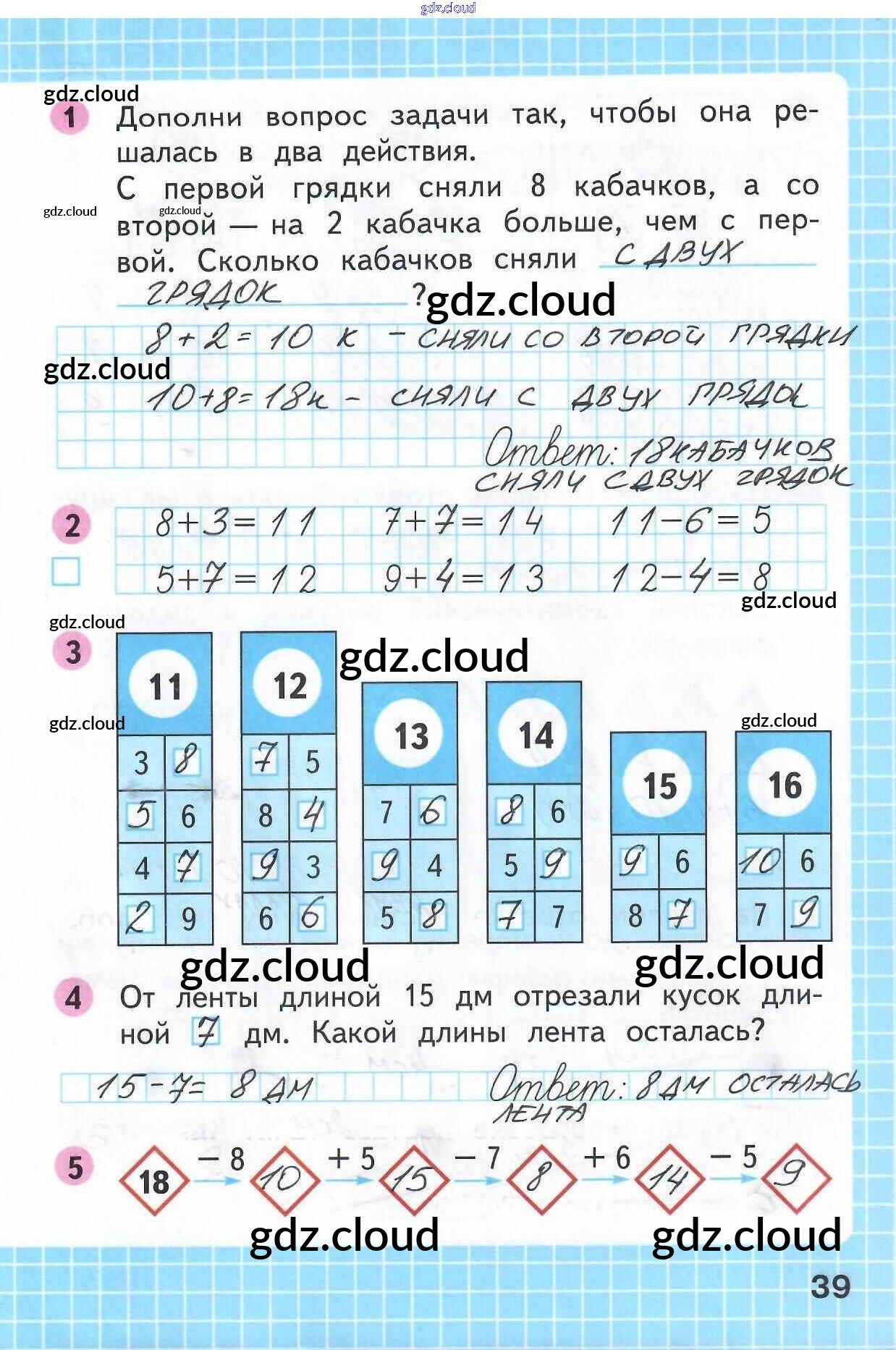 Ответ на задание 39 Рабочая тетрадь Математика за 1 (первый) класс Моро, Волкова Школа России 2016 Часть 1, 2