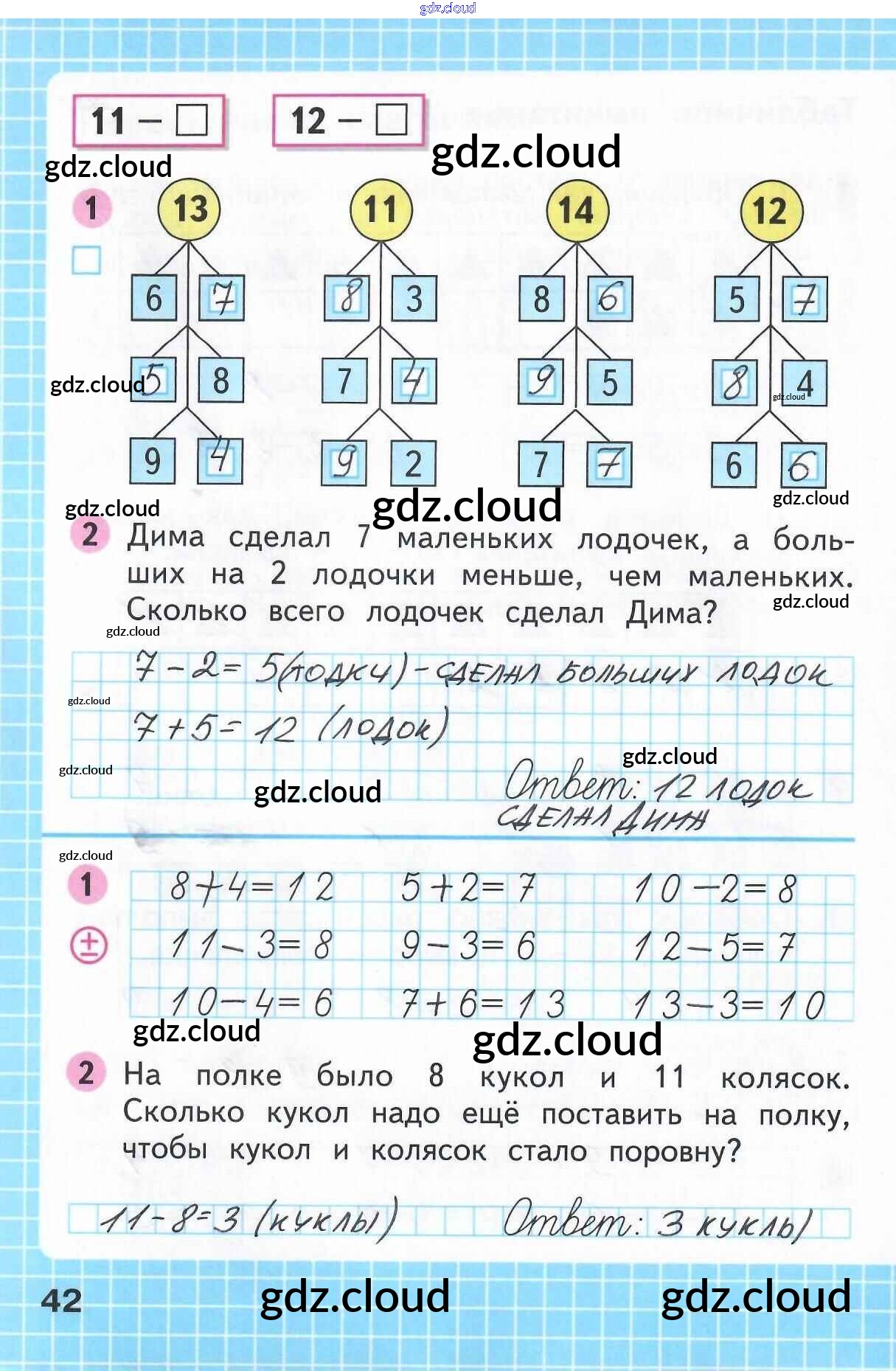 Ответ на задание 42 Рабочая тетрадь Математика за 1 (первый) класс Моро, Волкова Школа России 2016 Часть 1, 2