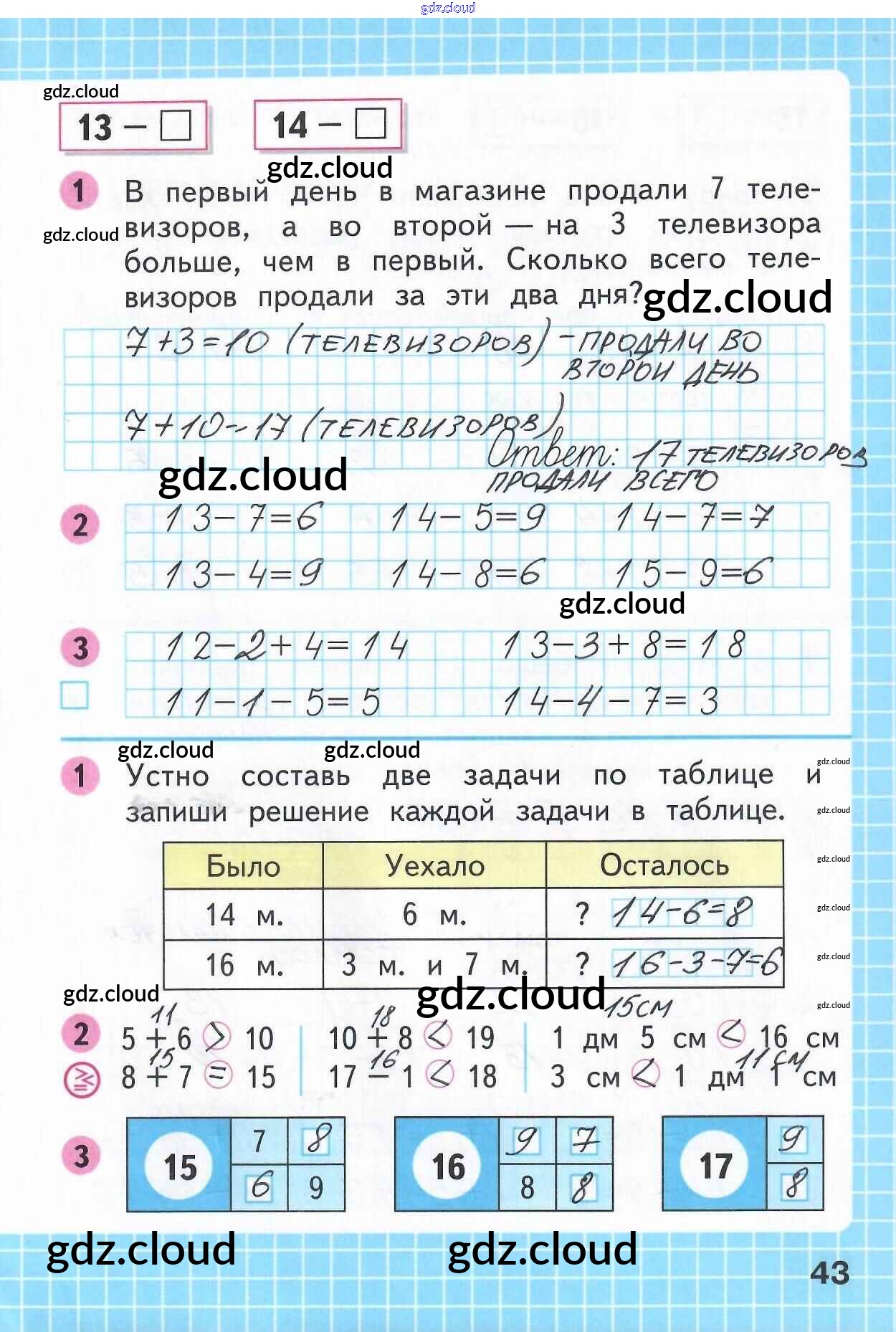 Ответ на задание 43 Рабочая тетрадь Математика за 1 (первый) класс Моро, Волкова Школа России 2016 Часть 1, 2