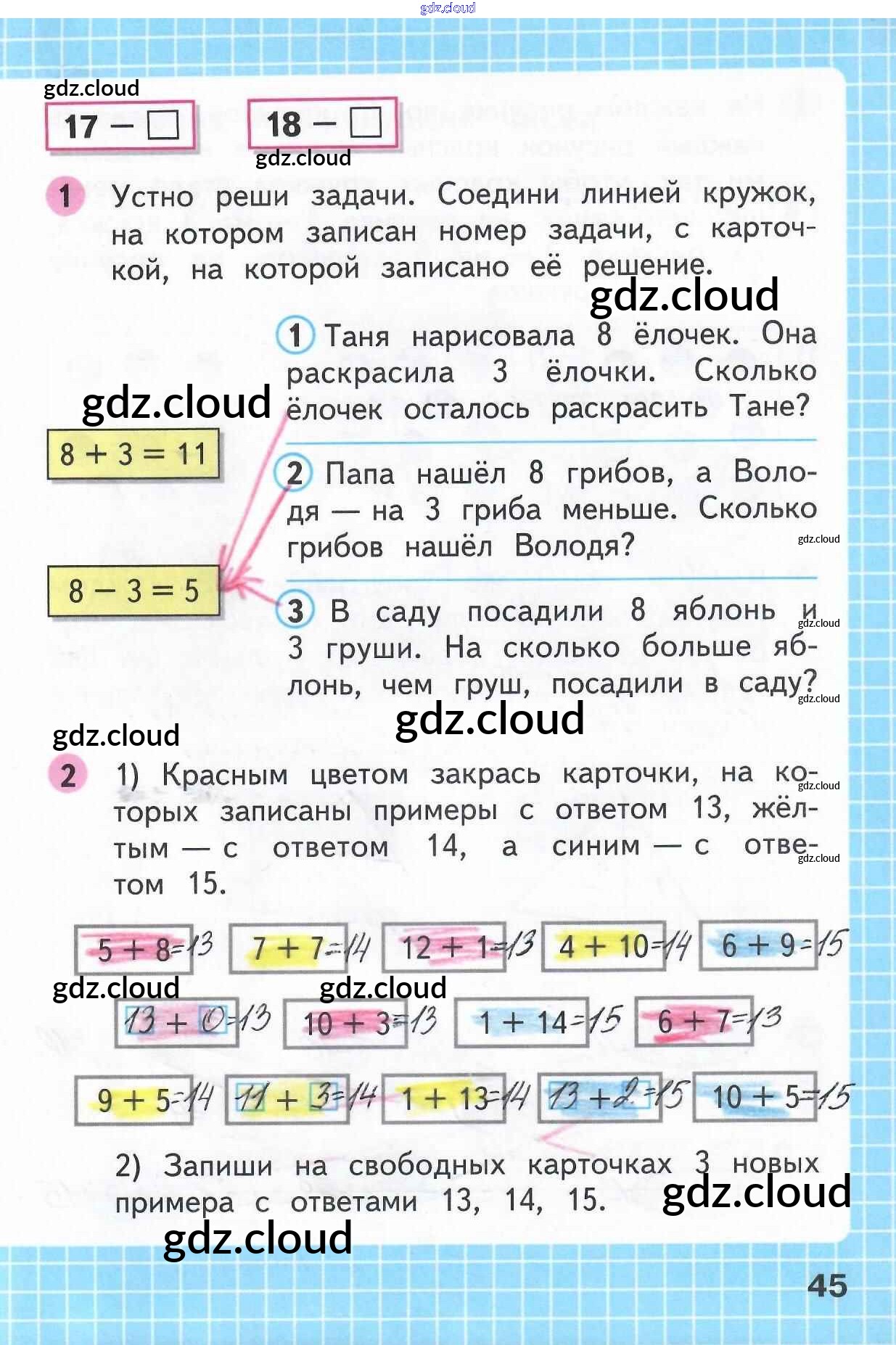 Ответ на задание 45 Рабочая тетрадь Математика за 1 (первый) класс Моро, Волкова Школа России 2016 Часть 1, 2