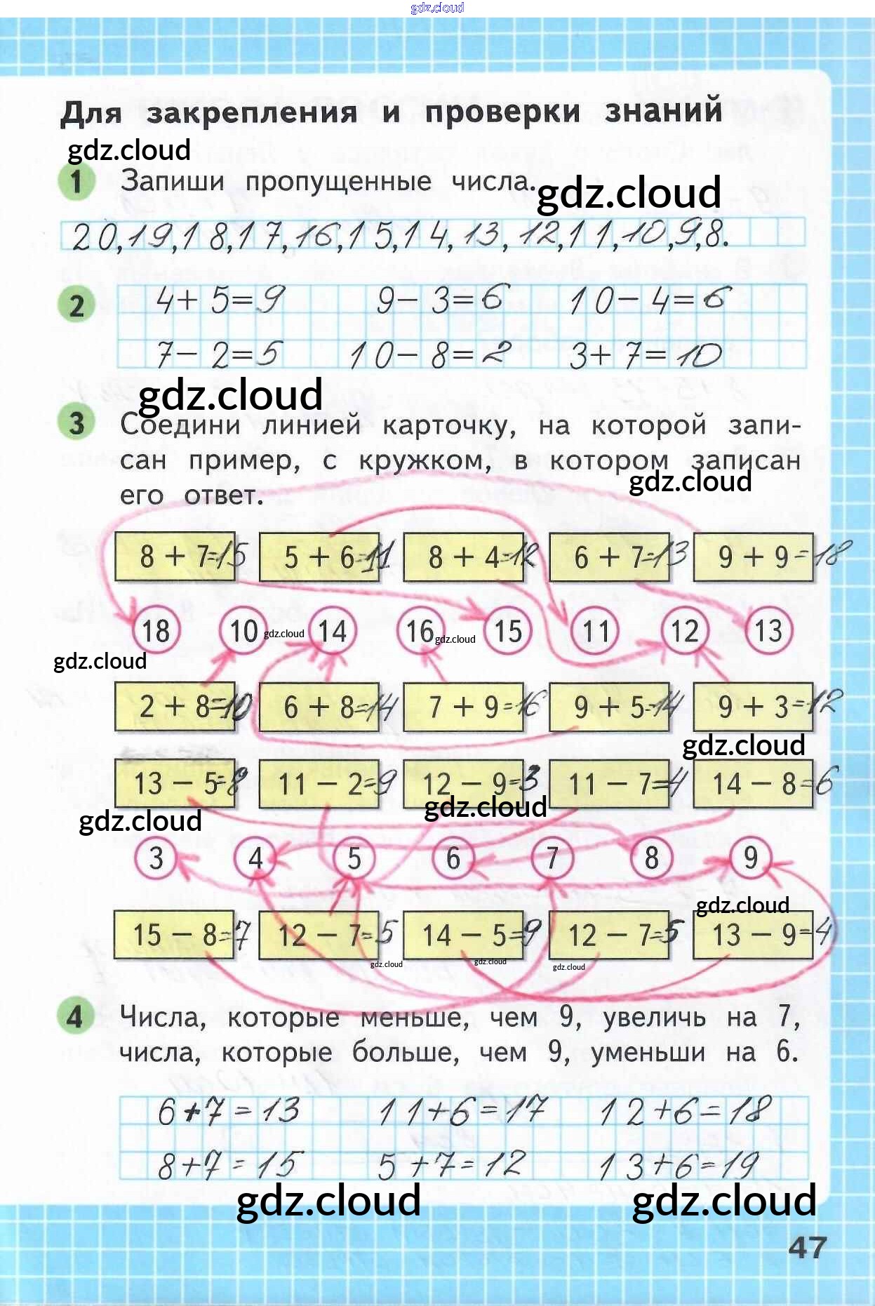 Ответ на задание 47 Рабочая тетрадь Математика за 1 (первый) класс Моро, Волкова Школа России 2016 Часть 1, 2