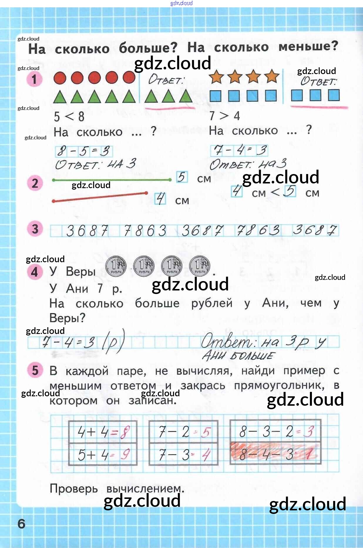 Ответ на задание 6 Рабочая тетрадь Математика за 1 (первый) класс Моро, Волкова Школа России 2016 Часть 1, 2