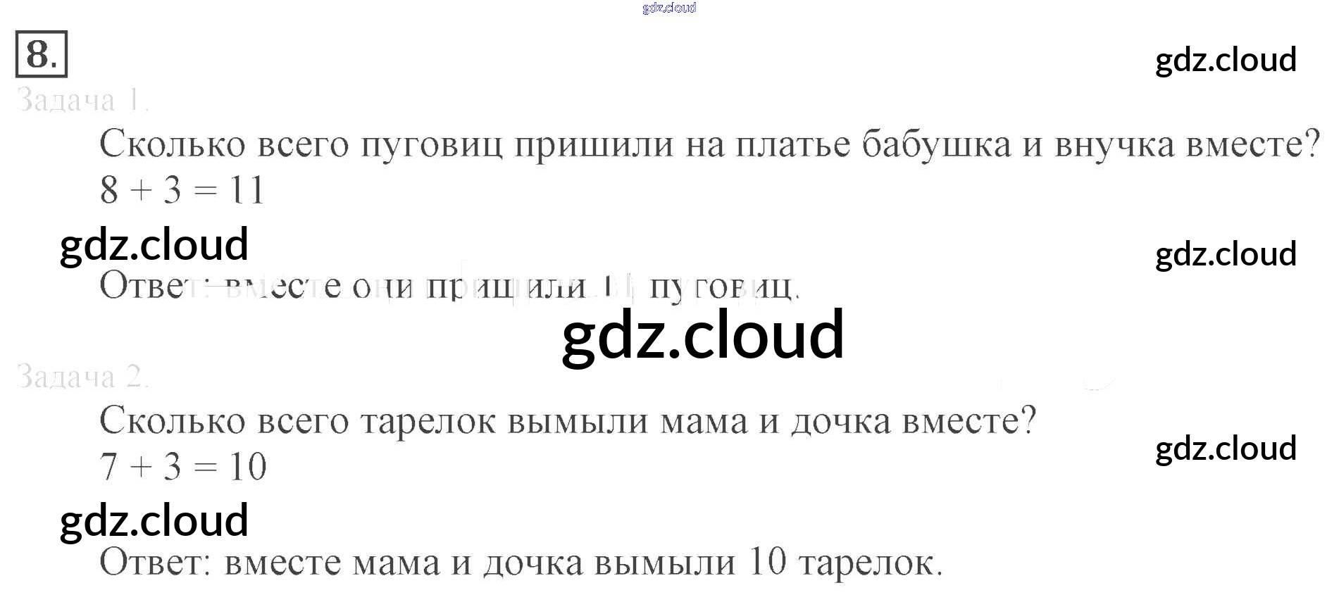 Ответ на задание Упр.8 Учебник Математика за 1 (первый) класс Рудницкая, Кочурова, Рыдзе Начальная школа XXI века 2016 Часть 1, 2