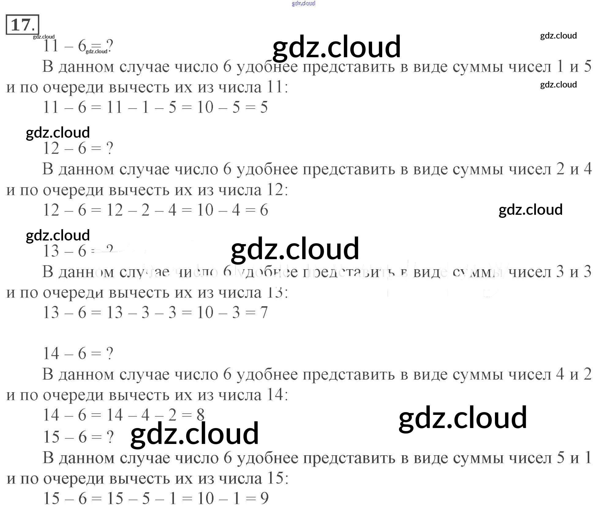 Ответ на задание Упр.17 Учебник Математика за 1 (первый) класс Рудницкая, Кочурова, Рыдзе Начальная школа XXI века 2016 Часть 1, 2
