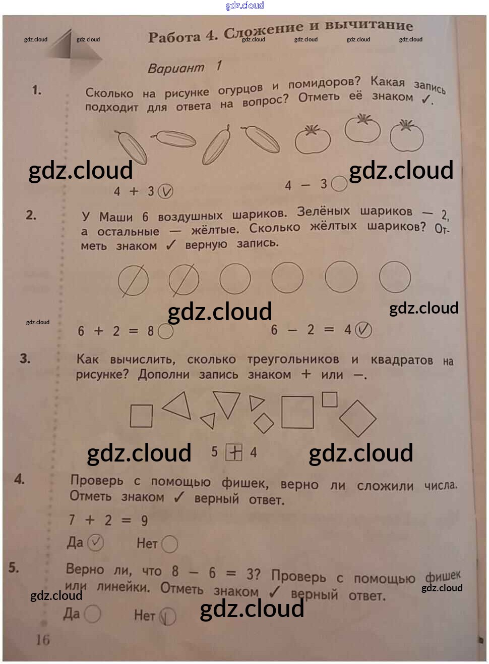Ответ на задание 16 Тетрадь для проверочных работ Математика за 1 (первый) класс Рудницкая Начальная школа XXI века 2020
