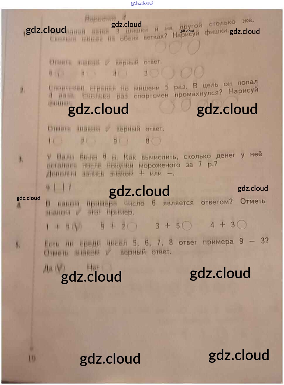 Ответ на задание 19 Тетрадь для проверочных работ Математика за 1 (первый) класс Рудницкая Начальная школа XXI века 2020