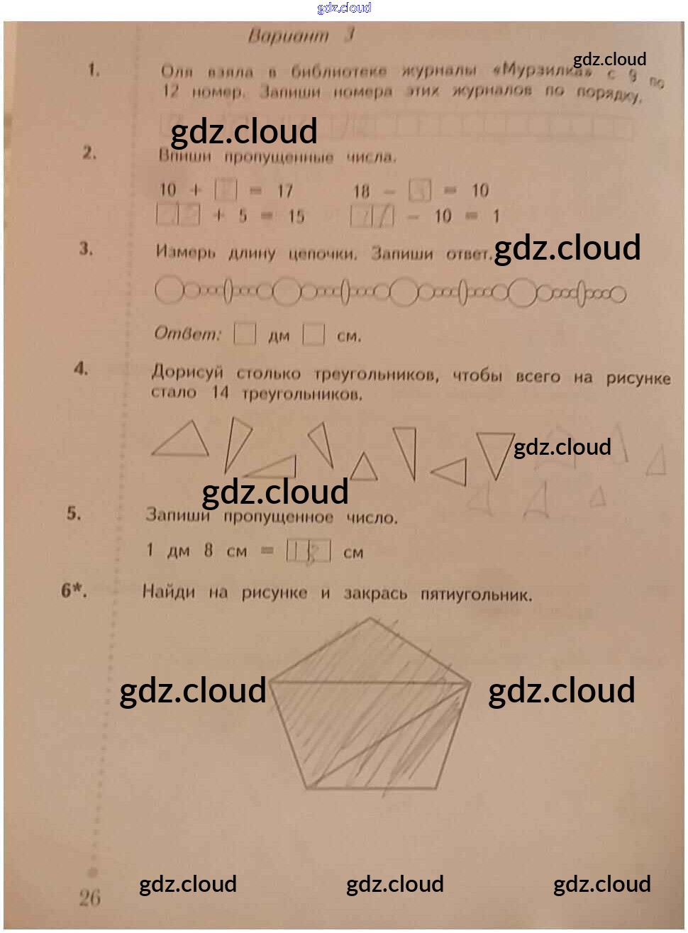 Ответ на задание 26 Тетрадь для проверочных работ Математика за 1 (первый) класс Рудницкая Начальная школа XXI века 2020