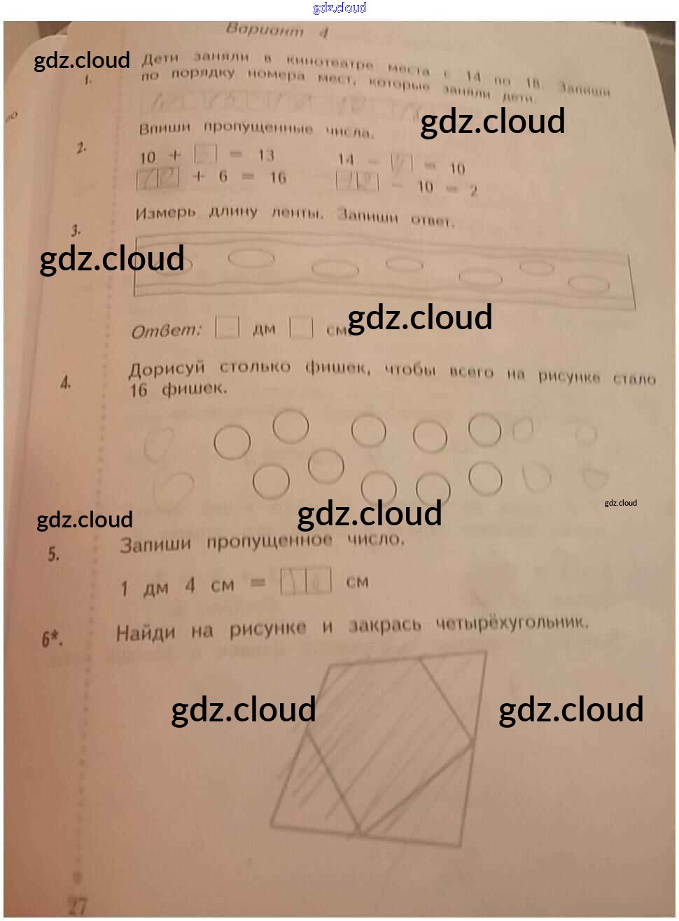 Ответ на задание 27 Тетрадь для проверочных работ Математика за 1 (первый) класс Рудницкая Начальная школа XXI века 2020
