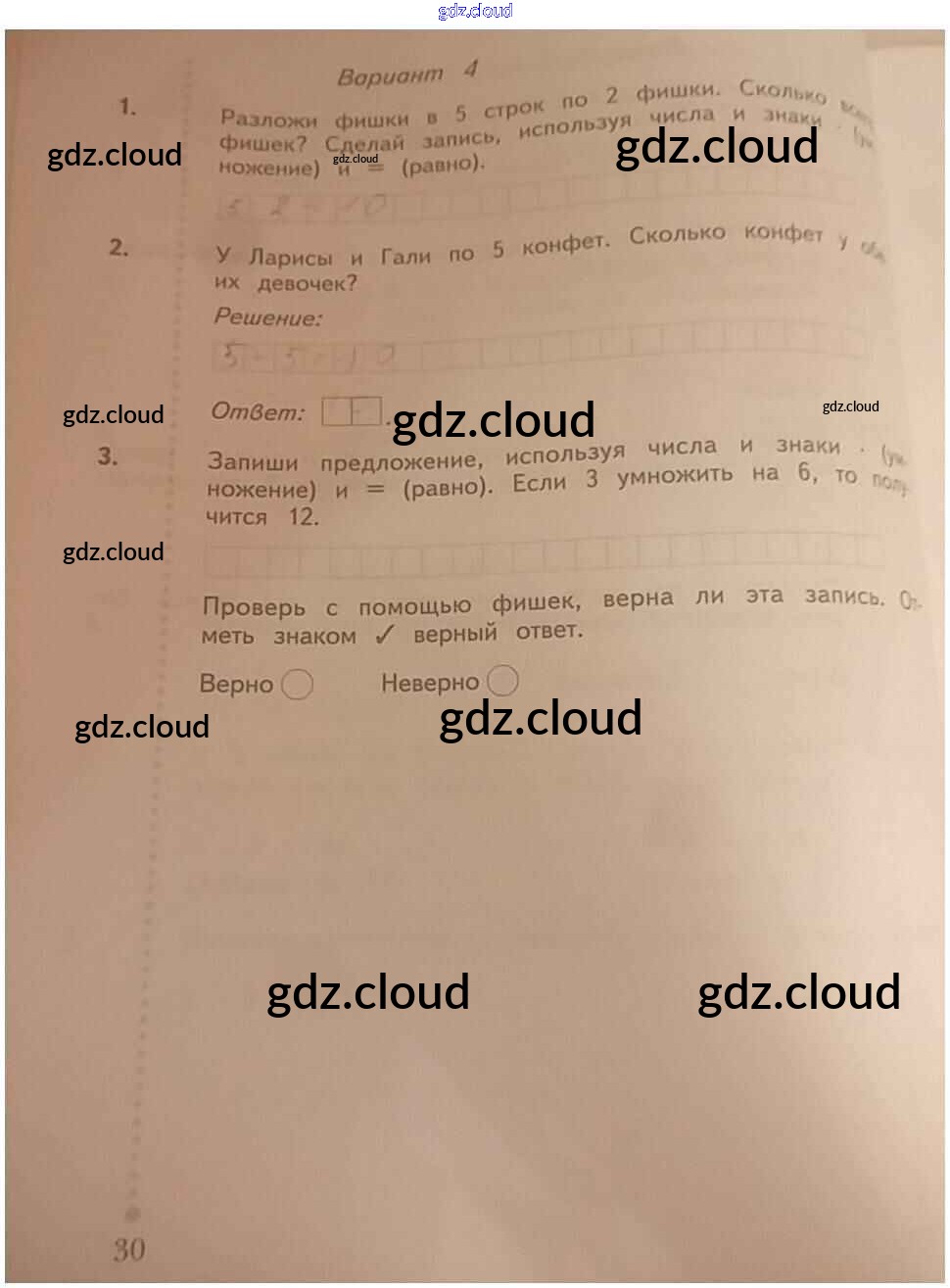 Ответ на задание 30 Тетрадь для проверочных работ Математика за 1 (первый) класс Рудницкая Начальная школа XXI века 2020